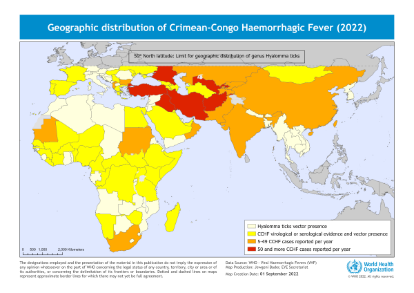 La FHCC est, en fait, endémique en Afrique, dans les Balkans, au Moyen-Orient et en Asie, dans les pays en deçà du 50e degré de latitude nord.2