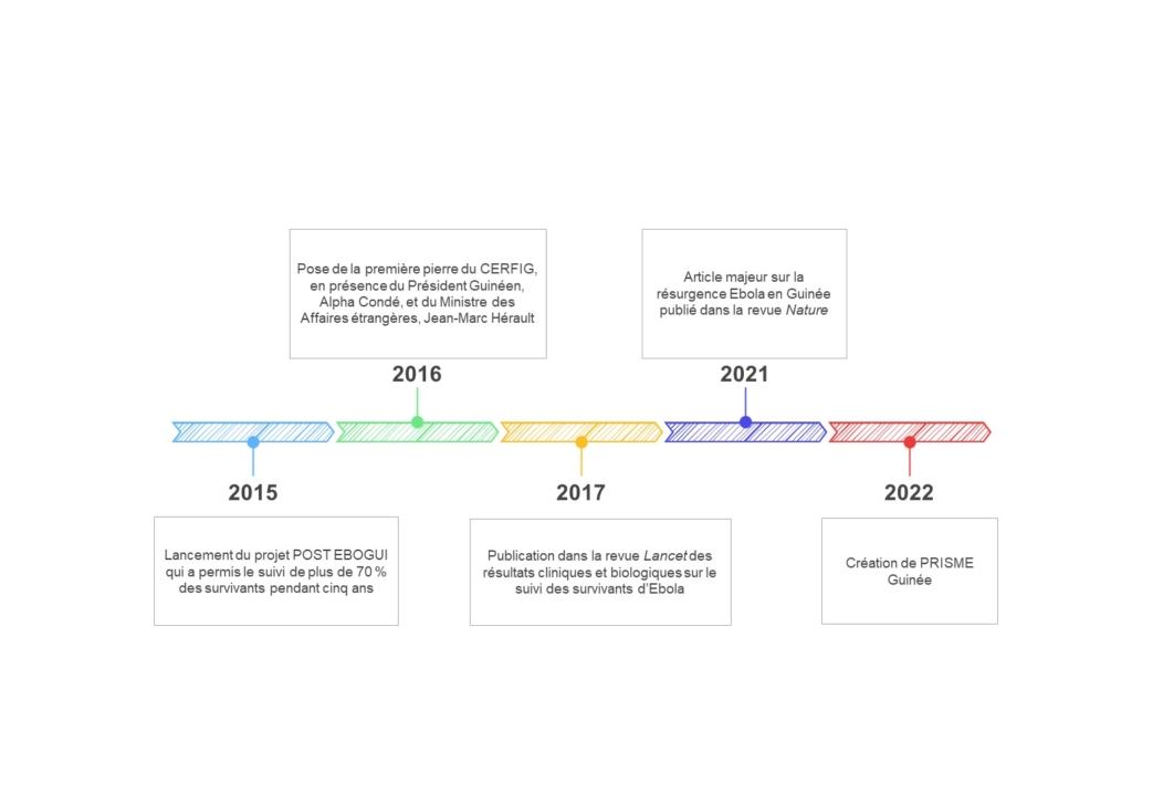 Le partenariat scientifique franco-guinéen s’est structuré au moment de l’épidémie d’Ebola de 2013 à 2016, et dans le cadre du renforcement des infrastructures de recherche et de formation en Guinée. Il a conduit à la création du Centre de Recherche et de Formation en Infectiologie de Guinée (CERFIG) qui associe les autorités nationales françaises et guinéennes, l’Inserm, l’IRD, l’université de Montpellier et l’université Gamal Abdel Nasser de Conakry, dans l’objectif d’améliorer la prévention et la réponse aux émergences. Ce partenariat a conduit, dans un premier temps, à la création d’un Laboratoire mixte internationale entre l’Université Gamal Abdel Nasser et le CERFIG, d’une part, et l’IRD et l’unité de recherche TransVIHMI de Montpellier, d’autre part.