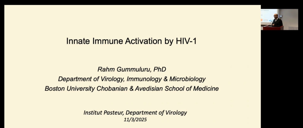 Et le 3 novembre 2025, le GRS a également accueilli Rahm Gummuluru, professeur à la Boston University School of Medicine, pour une présentation portant sur l’activation de l’immunité innée par le VIH-1. Enregistrée au département Virologie de l’Institut Pasteur, elle est à retrouver sur la chaîne YouTube de l’ANRS MIE :